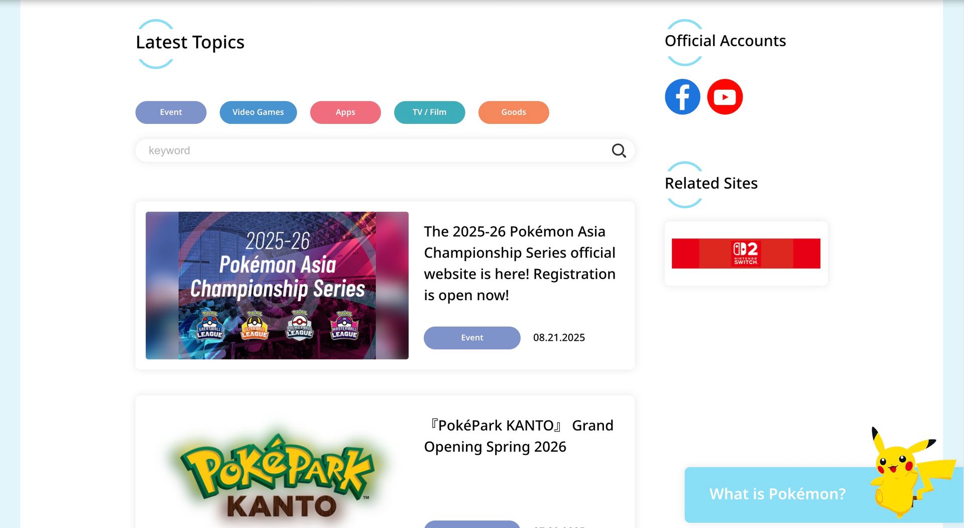 The official Pokémon website was relaunched on 25 September, 2025! Stay tuned as we showcase some of the new and improved features of this site. For the first day, let’s take a look at the homepage and the brand-new look of the website!
