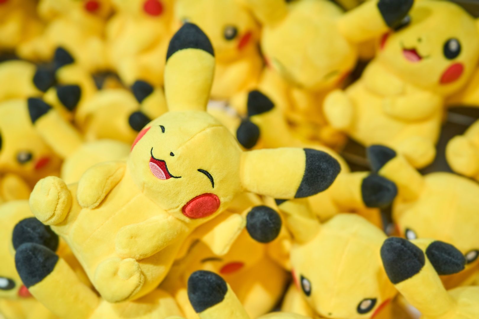 “My PIKACHU” resulted from the meshing of ideas from the creative and marketing sides. On the creative side, hints were taken from the way customers typically choose a plushie. Even with plushies created to all look alike, on close inspection each has a slightly different expression: one may suggest a mischievous streak, another is bursting with energy, yet another projects a look of innocence that demands your love and affection. Our staff member in charge of product planning came up with the idea to make every PIKACHU just a little bit different. Choosing a PIKACHU altogether unique – and uniquely yours – would surely be extra-special to the person who selects it. And so the project seed was planted.
